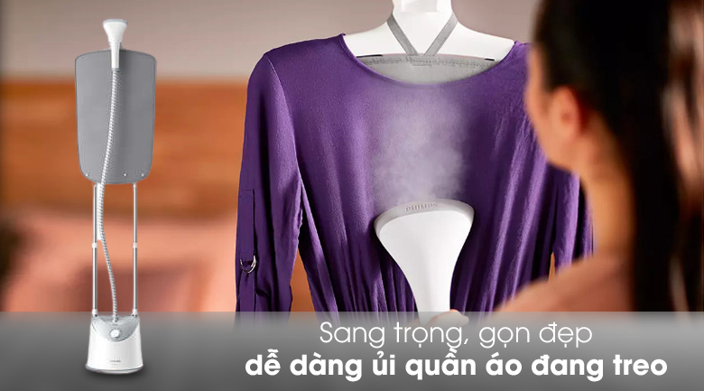 Bàn ủi Philips GC487/89 với thiết kế gọn gàng, sang đẹp, chiều cao dễ dàng tùy chỉnh để ủi ủi quần áo đang treo, rèm cửa, khăn màn,… nhẹ nhàng, đơn giản