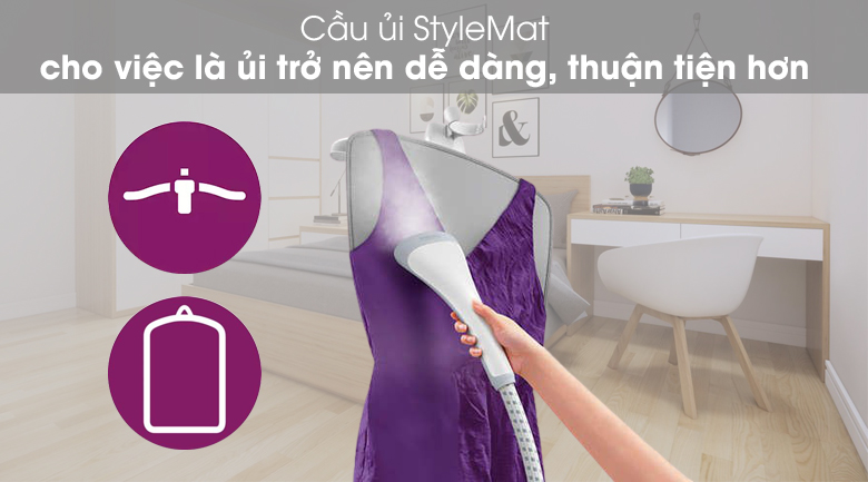 Bàn ủi hơi nước đứng Philips với móc treo và cầu ủi StyleMat cho việc là ủi trở nên dễ dàng, thuận tiện, nhanh chóng hơn
