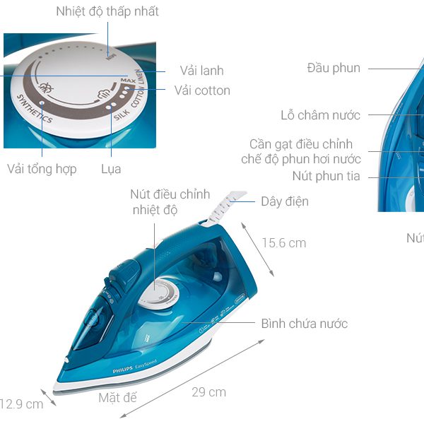 – Chế độ phun tia tiện ích khi cần là ủi những vị trí khó như nách áo, cổ áo, vị trí xếp li,…