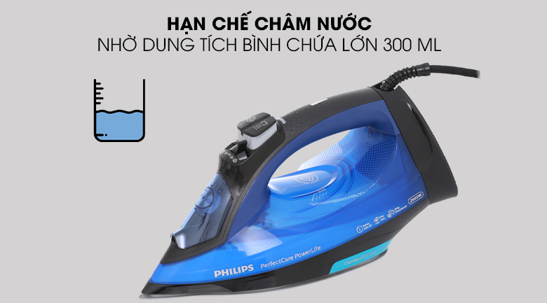 Dung tích bình chứa nước 300 ml đủ dùng cho 1 lần là ủi thông thường của gia đình 2–4 thành viên