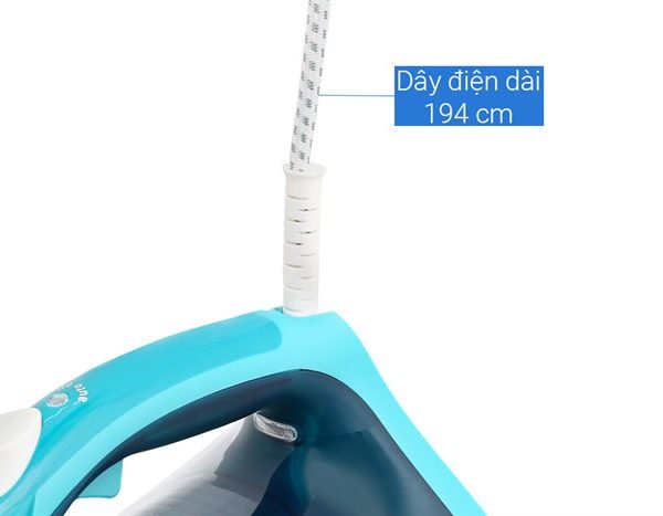 – Chiều dài dây điện 194 cm dễ dàng di chuyển khi ủi quần áo.