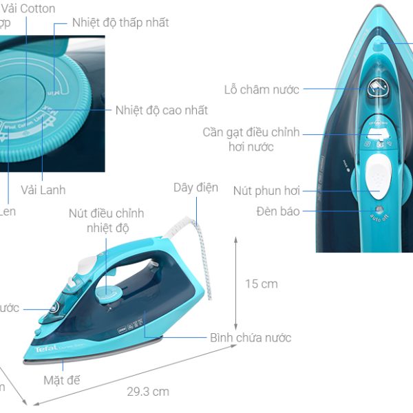– Bàn ủi hơi nước Tefal kiểu dáng hiện đại, màu sắc đẹp mắt, nhỏ gọn dễ cầm nắm khi ủi đồ.
