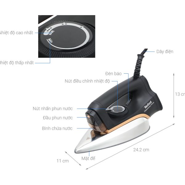 – Bàn ủi khô đến từ thương hiệu Tefal có kiểu dáng nhỏ gọn, khối lượng 0.65 kg, màu sắc hiện đại. Tay cầm được thiết kế vừa vặn mang lại cảm giác chắc chắn và thoải mái khi cầm nắm.