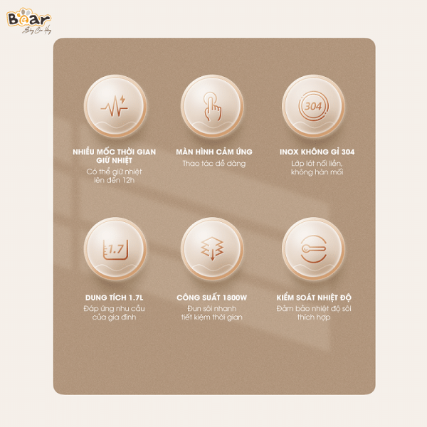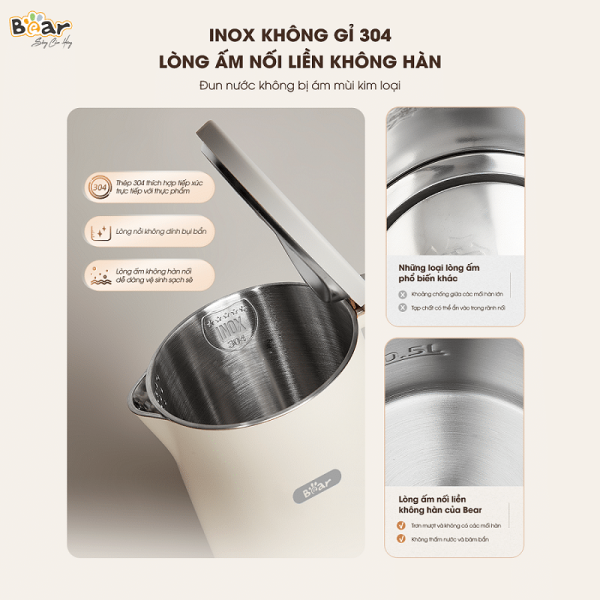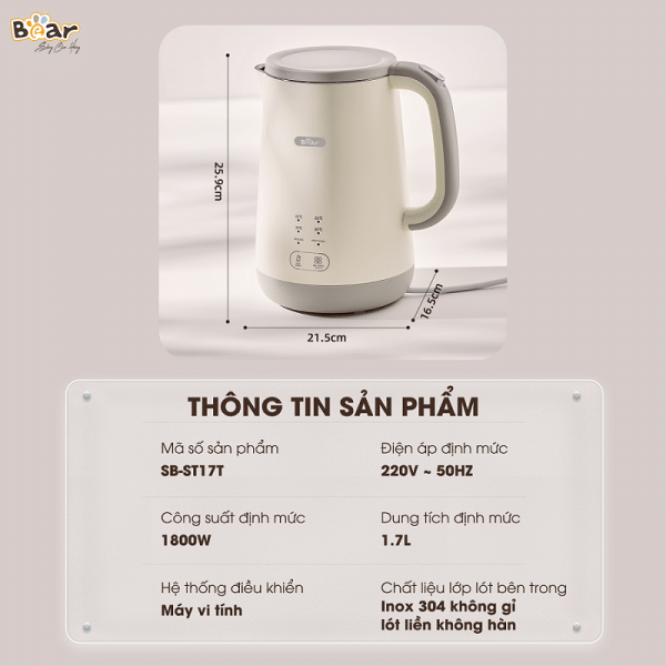 Bình đun nước giữ nhiệt Bear SB-ST17T (1.7L) Bản Tiếng Việt
