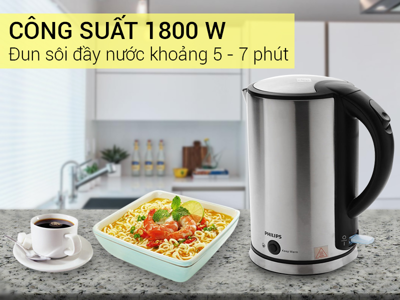 Bình Đun PHILIPS HD9316 nấu nước nhanh sôi với công suất mạnh mẽ.Ngoài ra đèn phát sáng khi bình đang đun nước và tắt khi bình đã đun xong, giúp bạn theo dõi quá trình đun nước dễ dàng.