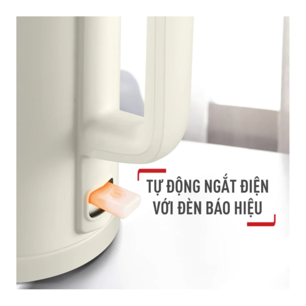 Bình được trang bị tính năng tự động ngắt điện khi nước đã sôi 100°C, giúp bảo vệ bình và đảm bảo an toàn cho người dùng. Đồng thời, đèn báo hiệu của bình giúp người dùng dễ dàng theo dõi quá trình đun sôi nước.