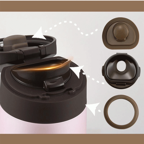 Miệng bình lưỡng tính MJE-A048 bằng thép không gỉ được gia công dạng gọng kép nhẵn mịn và rộng đến 5.5cm dễ dàng bỏ đá viên hay uống trực tiếp cũng như thuận tiện vệ sinh. Ngoài ra, các bộ phận của bình lưỡng tính tách rời được giúp bạn thuận tiện cho việc vệ sinh. Không chỉ vậy, với thiết kế nguyên khối bạn có thể rửa được dưới vòi nước.