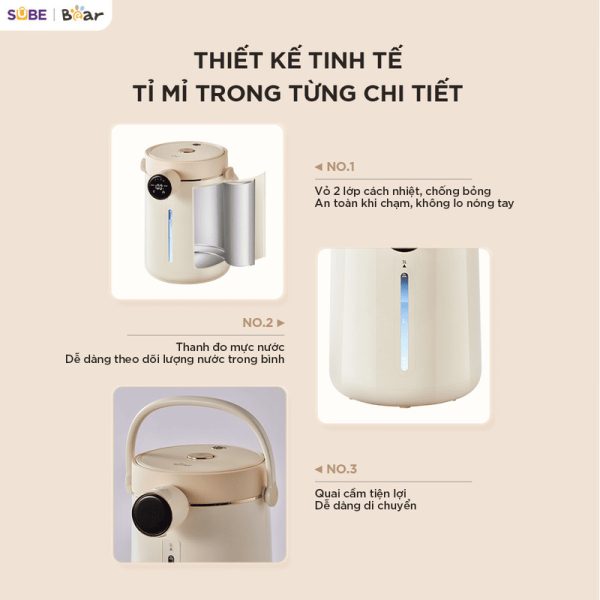 An toàn luôn là ưu tiên hàng đầu, đặc biệt là khi gia đình có trẻ nhỏ. Bình thuỷ điện Bear 3L EWB-5H30C60 được thiết kế với nhiều tính năng an toàn “tuyệt đối”, mang đến sự an tâm tuyệt đối cho người sử dụng: