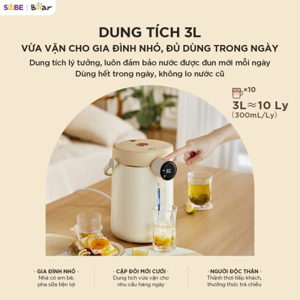 Không còn cảnh “ước lượng” nhiệt độ, với Bình thuỷ điện Bear 3L EWB-5H30C60, việc pha trà, pha sữa hay pha cà phê chuẩn nhiệt trở nên dễ dàng hơn bao giờ hết:
