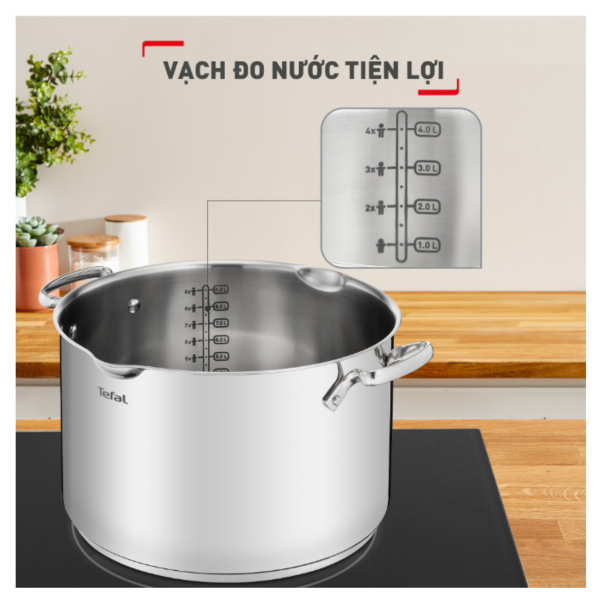 - Thể tích: Nồi 18cm: 1.9L / Nồi 20 cm: 2.8L / Nồi 24 cm: 4.9L / Nồi 28cm: 10.4L