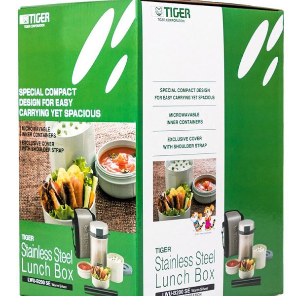 Cà men cơm Tiger LWU-B200 dung tích 1.41L thu hút ánh nhìn với kiểu dáng thời trang, sang trọng, hiện đại với độ bền cao theo thời gian sử dụng cũng như thiết kế 3 ngăn tiện dụng : 1 hộp đựng cơm [0,80L], 1 hộp chứa thức ăn [0,34L], 1 hộp chứa canh [0,27L] phù hợp với nhu cầu ăn cơm trưa hợp vệ sinh tại văn phòng hay trong những chuyến dã ngoại. Bên cạnh đó, lớp sơn tĩnh điện giữ bình lâu phai màu và không mau dơ.