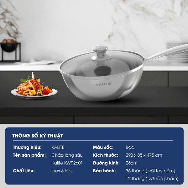 Chảo inox 304 lòng sâu KWP2601 – sang trọng từ thiết kế, tinh tế trong từng chi tiết.