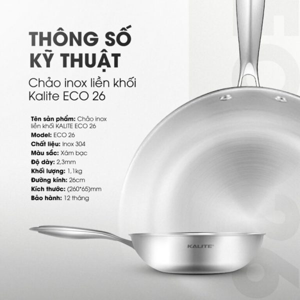 Chảo rán inox liền khối cao cấp KALITE ECO 26