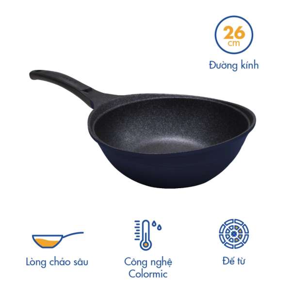 • Đường kính chảo 26cm, đế từ sử dụng nhiều loại bếp
