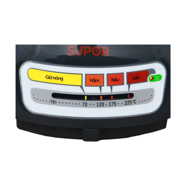 Dễ dàng sử dụng nồi lẩu điện với bảng điều khiển nhiệt độ bằng nút gạt.Ngoài nấu lẩu, nồi còn có thể dùng để chiên xào, nấu canh, hầm hoặc kho thịt cá… đều rất tiện lợi.