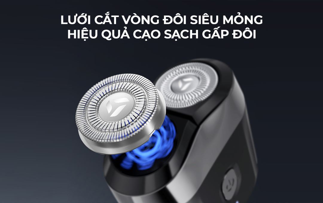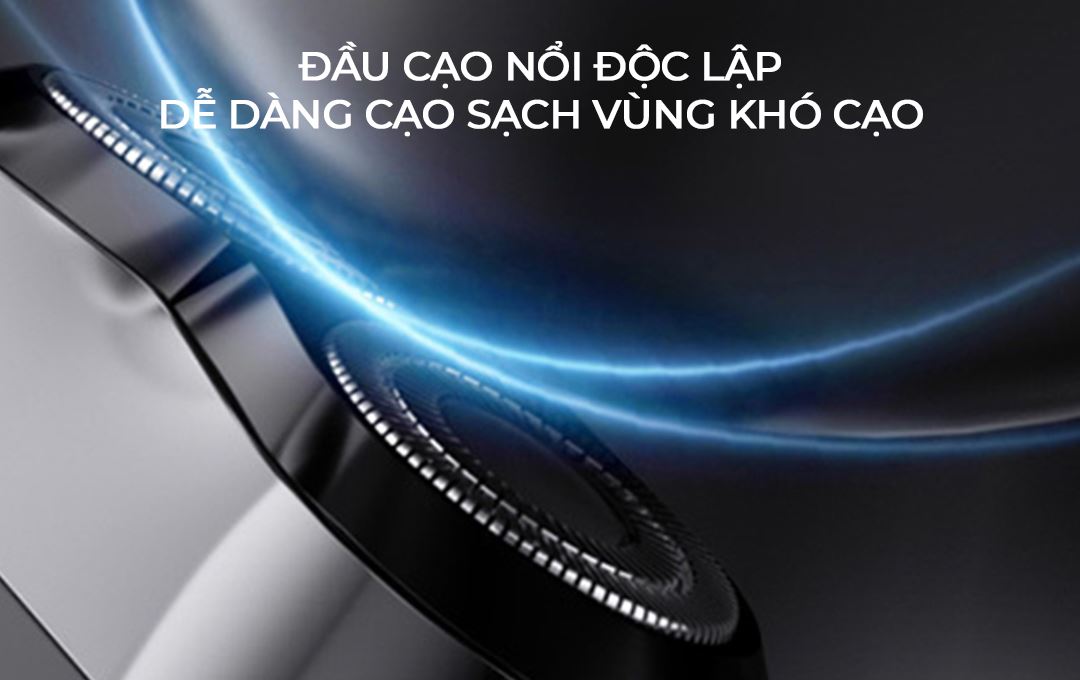 2 đầu cạo nổi độc lập, xoay 360° có thể tùy chỉnh ôm theo đường nét khuôn mặt