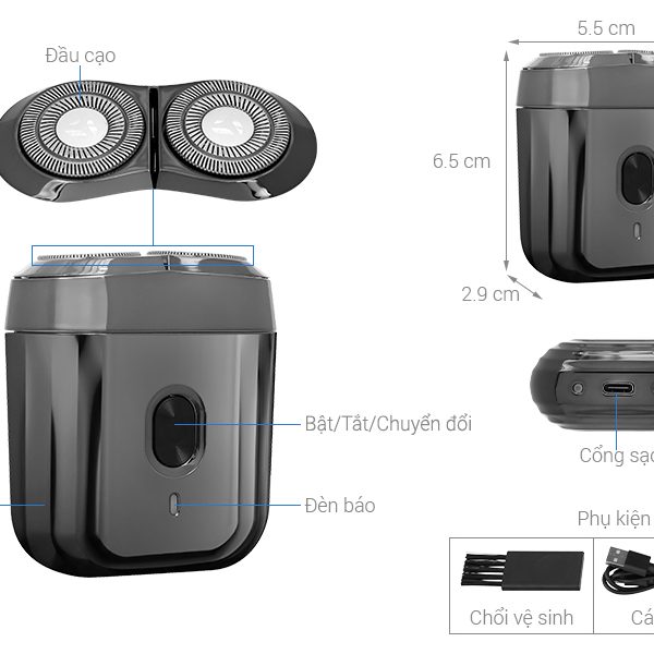 Máy cạo râu khô và ướt kích thước nhỏ gọn với khối lượng chỉ hơn 100g