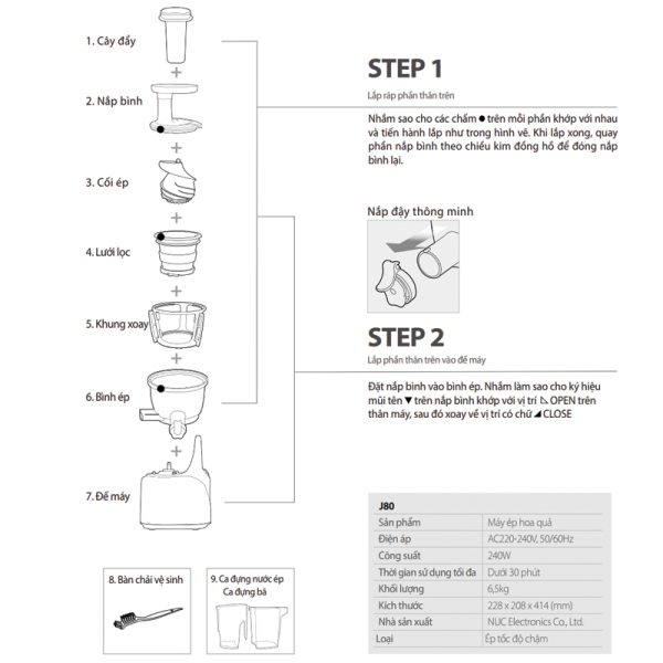 Máy ép trái cây tốc độ chậm hiệu Kuvings J80 dung tích 400ml nhập khẩu từ Hàn Quốc có thiết kế nhỏ gọn, nhiều màu sắc trẻ trung, sang trọng, hiện đại và an toàn luôn luôn có mặt trong mọi không gian nhà bếp. Bên cạnh đó, với cấu tạo từ linh kiện cao cấp và nhựa thân thiện môi trường, cứng cáp, bền bỉ và chịu nhiệt tốt giữ máy ép trái cây tốc độ chậm lâu phai màu, không mau dơ với độ bền cao theo thời gian sử dụng. Ngoài ra, máy ép trái cây tốc độ chậm Kuvings có dụng cụ vệ sinh bàn chải, ca đựng nước ép và ca đựng bã ép kèm theo sản phẩm tiện lợi phục vụ những ly nước ép với hương vị phong phú hơn, màu sắc tươi hơn và giữ được toàn bộ dinh dưỡng của trái cây và rau củ quả mà không bị tách nước nhanh cho gia đình bạn.