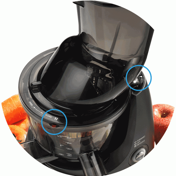 Máy ép trái cây tốc độ chậm Kuvings NS-1725CBC2 với thiết kế miệng máy ép nguyên trái lẫy tự động thông minh 2 trong 1 thế hệ mới “O Type Flap Gate” với 2 miệng ép trong 1 (miệng ép nguyên trái củ quả và miệng ép rau) được cấp bằng sáng chế với đường kính 82mm ép cả quả mà không cần phải cắt lát và dùng sức để đẩy trái cây giúp bạn tiết kiệm 50% thời gian chuẩn bị nguyên liệu cũng như hạn chế mất chất dinh dưỡng của hoa quả khi bị cắt bổ. Ngoài ra, bảng điều khiển thiết kế một nút nhấn đơn giản và dễ dàng sử dụng với chức năng : tắt, mở và đảo ngược (khi nguyên liệu bị kẹt) đáp ứng những ly nước ép hoa quả với hương vị đa dạng và phong phú cho gia đình bạn.