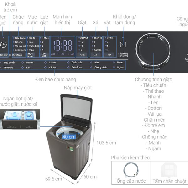 Bảng điều khiển được bố trí phía sau giúp người dùng thao tác với máy dễ dàng và thuận tiện hơn.