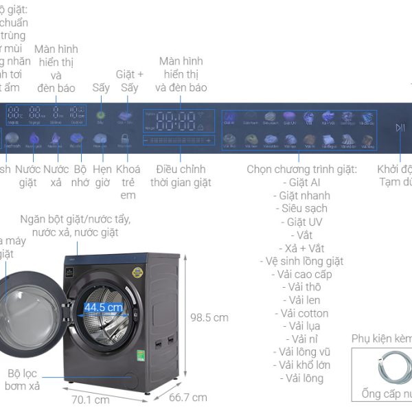 Được trang bị khả năng diệt khuẩn bằng tia UV giúp cho mẫu máy giặt này loại bỏ hiệu quả vi khuẩn bám trên bề mặt vải, mang đến quần áo sạch sẽ, đảm bảo an toàn cho mọi thành viên trong gia đình, chăm sóc tốt hơn làn da nhạy cảm của bạn.