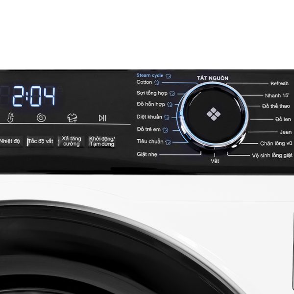 Bảng điều khiển trên máy giặt được trang bị nút xoay chọn chương trình. Điều này giúp người dùng dễ dàng điều chỉnh chương trình giặt phù hợp với loại vải và mức độ bẩn. Bạn có thể lựa chọn từ các chương trình giặt sẵn có hoặc tùy chỉnh theo nhu cầu của mình.