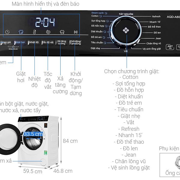 Máy Giặt Aqua Inverter 8 Kg AQD-A800F W – Trắng sạch tinh tươm