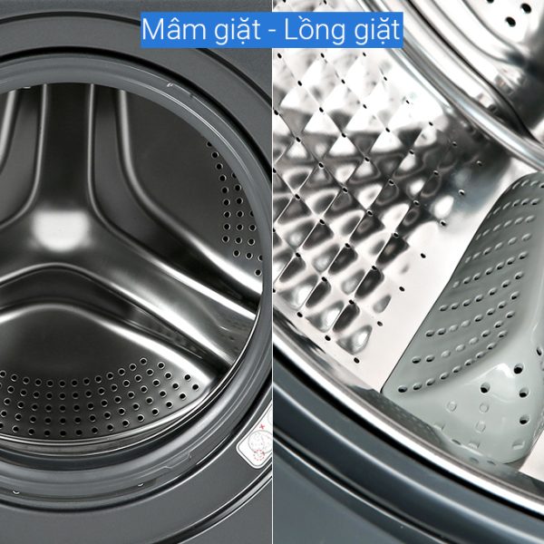 Lồng giặt được làm từ thép không gỉ, thiết kế dạng Pillow giảm ma sát quần áo với lồng giặt, hạn chế quần áo bị tưa sờn qua mỗi lần giặt.