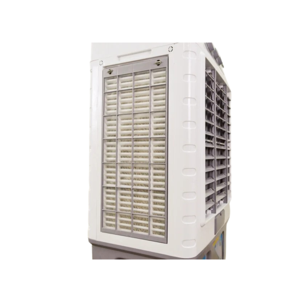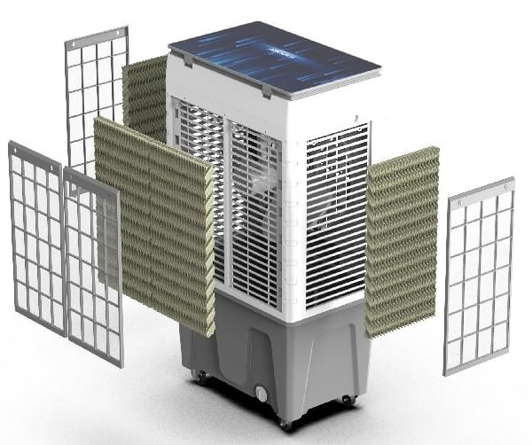 Thân máy làm mát được làm bằng nhựa cao cấp bền đẹp, sở hữu màu sắc trang nhã. Máy gió thổi 4 chiều với lưu lượng gió lên đến 4.800 m3/ giờ kết hợp chức năng đảo gió tự động (trái – phải), cho phép mở rộng phạm vi làm mát lên tới 60m2.