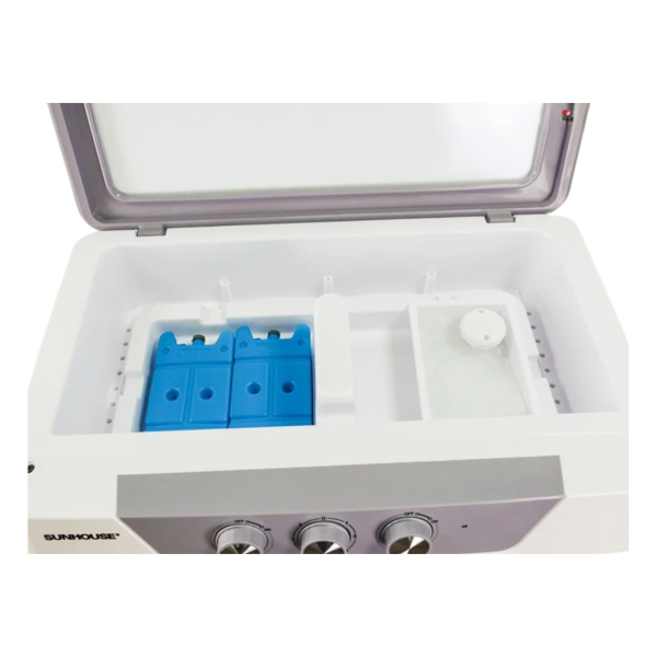 Máy làm mát Sunhouse SHD7777 còn đi kèm thêm 2 viên đá khô để tăng hiệu quả làm mát. Cách sử dụng đá khô trong máy làm mát là cho đá khô vào tủ lạnh, sau đó cho lên nắp máy để đảm bảo nước được làm mát, từ đó cho không khí mát hơn.