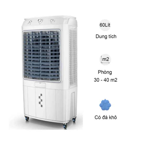 Sản phẩm có dung tích 60 lít với mức tiêu thụ nước khoảng 3 – 5 lít/giờ, mang lại khả năng làm mát liên tục và tiết kiệm điện tối đa. Ngoài ra, dung tích lớn giúp người dùng không cần châm nước cho máy thường xuyên, giúp tiết kiệm công sức tối đa.