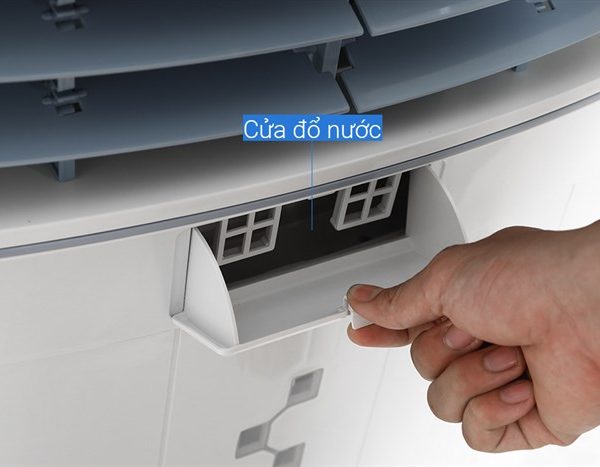 Khoang chứa nước có van xả nước giúp quá trình thay nước sạch và vệ sinh máy dễ dàng hơn, đảm bảo hiệu quả làm mát và duy trì độ bền của máy.