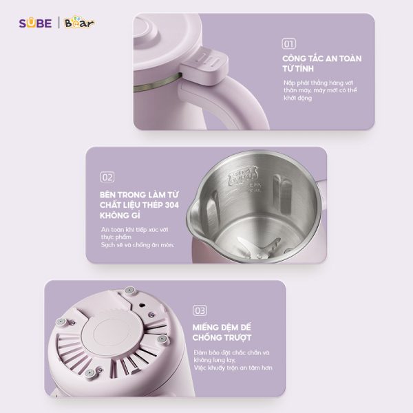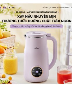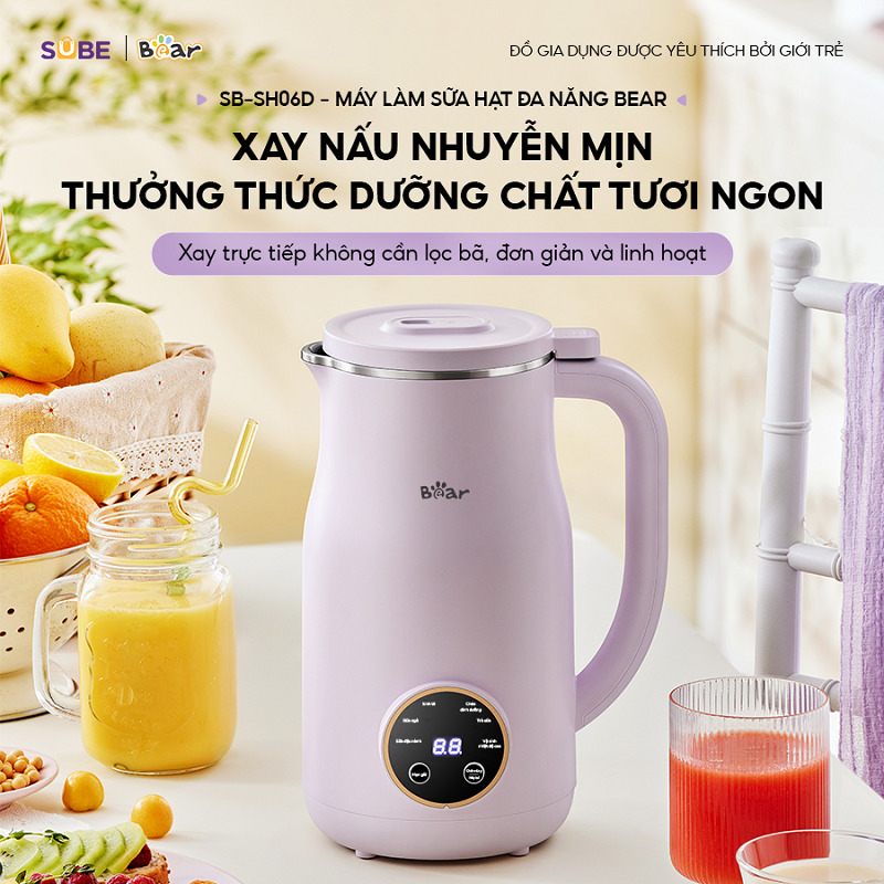 Máy Làm Sữa Hạt Bear SB-SH06D (0.6L) với thiết kế màu tím nhẹ nhàng không chỉ làm cho không gian bếp trở nên độc đáo mà còn mang lại sự tiện lợi tuyệt vời cho người sử dụng. Với nhiều chức năng đa dạng tích hợp, chiếc máy này giúp bạn và gia đình thỏa sức thưởng thức nhiều loại đồ uống khác nhau.
