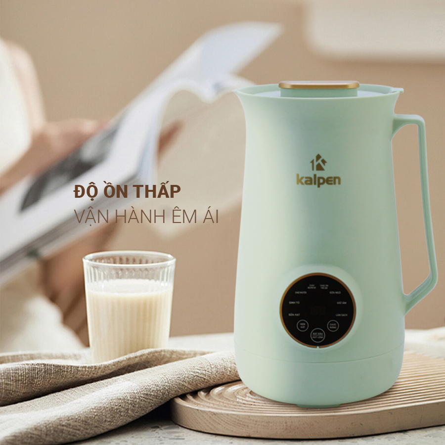 Máy làm sữa hạt Kalpen hoạt động êm ái với tiếng ồn thấp. Khác biệt với các loại máy làm sữa hạt thông thường có tiếng ồn lớn 70-80dB. Máy sữa hạt Kalpen H2 hoạt động với mức tiếng ồn chỉ khoảng 20-25dB, giúp máy vận hành một cách êm ái và không gây ảnh hưởng đến cuộc sống hàng ngày của gia đình bạn. Bạn có thể thưởng thức sữa hạt mà không bị làm phiền bởi tiếng ồn.