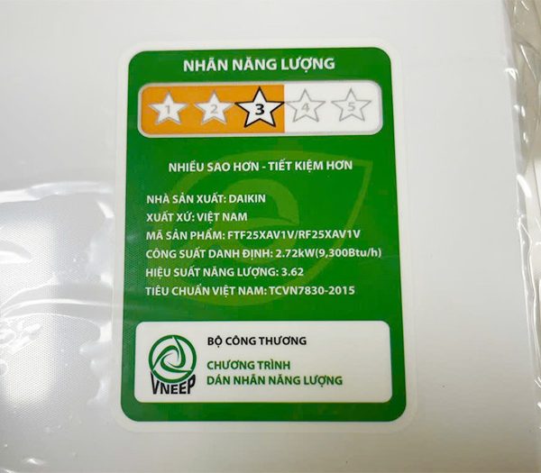 Nhãn năng lượng của máy lạnh đạt chuẩn 3 sao nhờ những cải tiến về công nghệ máy nén kết hợp linh kiện cao cấp. Hơn thế chỉ số hiệu suất năng lượng CSPF là 3.71 sẽ giúp thiết bị tiết kiệm tới 20% điện năng hằng tháng.