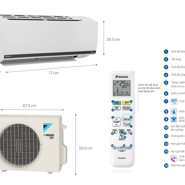 Cánh đảo gió của điều hòa có thể tùy chỉnh theo hai hướng lên – xuống giúp người dùng dễ dàng định hướng luồng gió thổi theo nhu cầu làm mát. Đặc biệt, điều hòa Daikin Inverter FTKB35YVMV được tích hợp chế độ quạt gió Fan Only với cơ chế chỉ làm mát không làm lạnh giúp tiết kiệm điện năng và môi chất trong những ngày trời không quá nóng cũng như tăng cường khả năng đối lưu không khí trong phòng.
