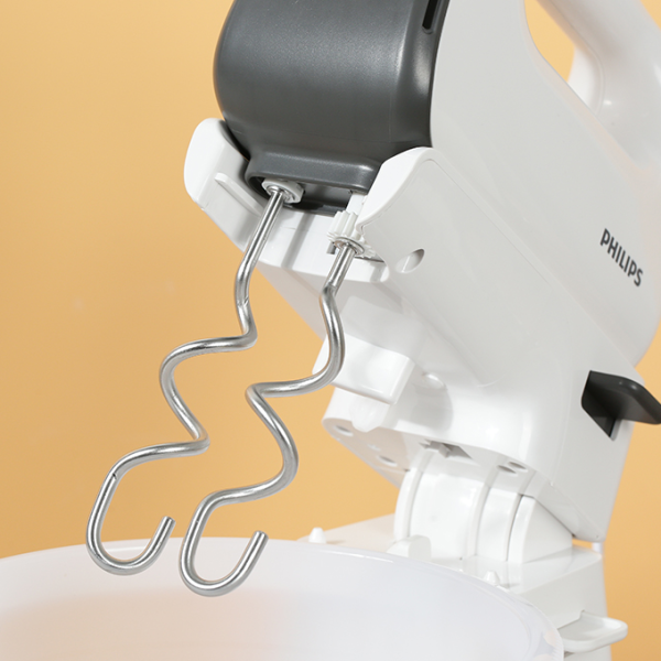 Máy nhồi bột đánh trứng Philips HR3745/00 thiết kế vừa để bàn vừa cầm tay sử dụng linh hoạt theo nhu cầu, công suất lớn 450W giúp việc nhào bột khó xử lý nhất trở nên đơn giản và nhẹ nhàng hơn bao giờ hết.