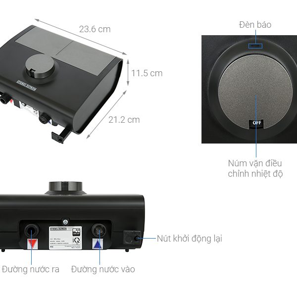 – Núm xoay điều chỉnh nhiệt độ: Bạn có thể sử dụng núm xoay để thay đổi nhiệt độ nước với 3 mức thấp – trung bình – cao linh hoạt.