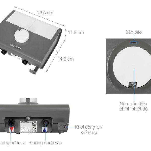 – Máy nước nóng Stiebel Eltron có vỏ ngoài màu xám và đen kết hợp, thiết kế sang trọng làm nổi bật không gian phòng tắm của gia đình. Bên cạnh đó, máy sở hữu kiểu dáng nhỏ gọn, thích hợp lắp đặt ở các vị trí như bồn rửa, phục vụ nhu cầu rửa tay, rửa chén bát,…