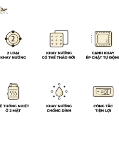 • Vỉ nướng dễ tháo rời, dễ vệ sinh