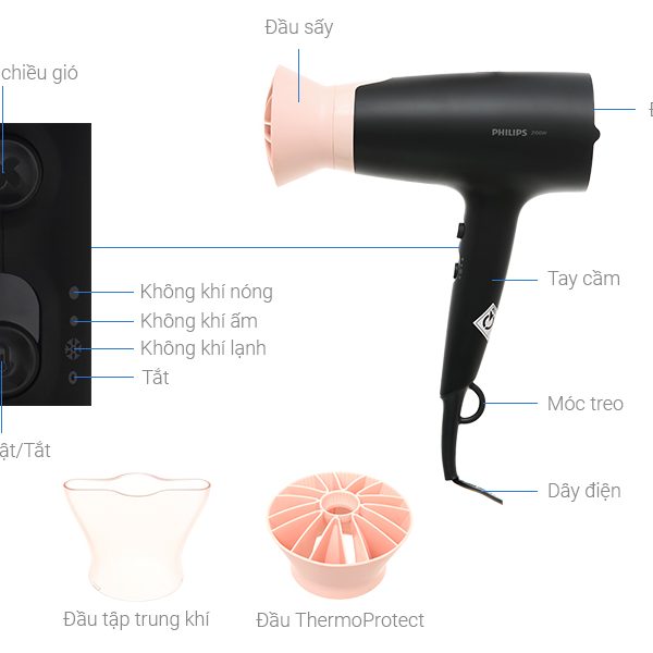 Máy sấy tóc Philips có chế độ sấy bảo vệ tóc