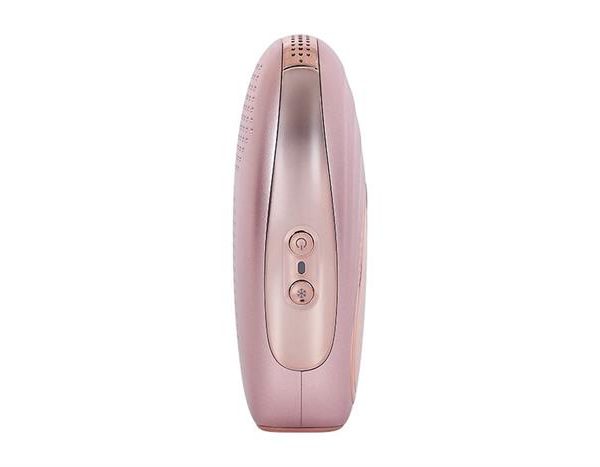 Halio IPL Cooling Hair Removal Device sở hữu thiết kế nhỏ gọn với tông màu hồng tạo cảm giác tinh tế ngay từ cái nhìn đầu tiên. Thân máy được bo tròn mềm mại, vừa vặn trong lòng bàn tay, giúp cầm nắm chắc chắn và thao tác dễ dàng trên nhiều vùng da khác nhau.
