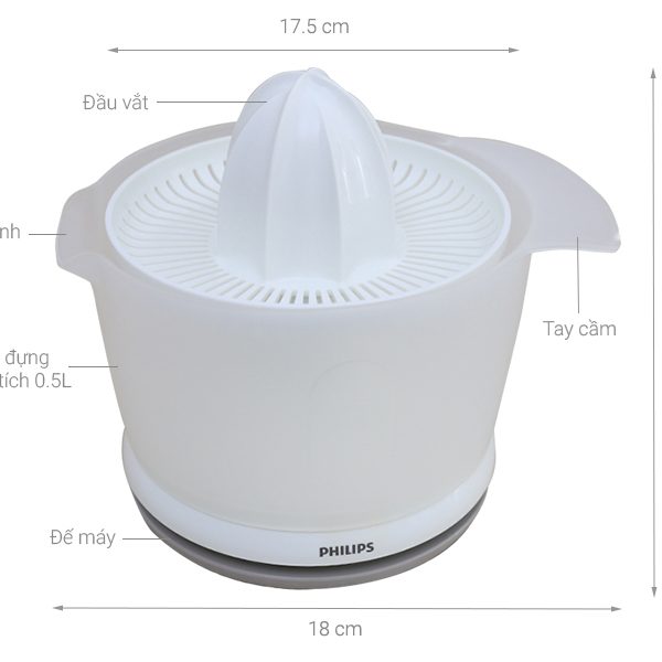 Với dung tích 0.5 lít, bạn có thể vắt liên tục 4 – 5 quả cam mà không phải tốn công tháo lưới lọc để rót nước ép ra cốc uống nhiều lần.