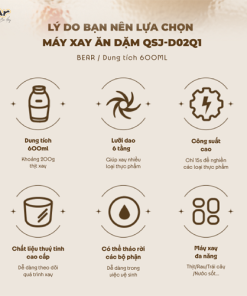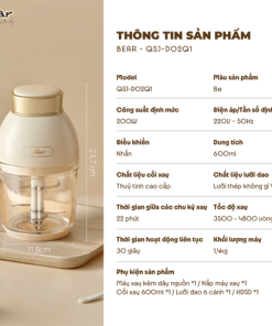 Máy xay ăn dặm Bear QSJ-D02Q1 0.6L là người bạn đồng hành với bạn, là bảo bối hữu ích cho căn bếp nhỏ của bạn với khả năng xay nhuyễn mịn vượt trội.