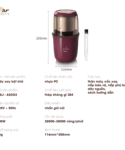 Máy xay bột khô Bear MDJ-A02G3 với công suất hoạt động 200W cùng tốc độ xay lên đến 28000-38000 vòng/phút giúp cho việc xay bột, xay nguyên liệu, xay hạt, xay thuốc của bạn trở nên nhanh chóng và hiệu quả hơn hẳn. Máy xay hạt khô cho ra kết quả hạt mịn, nhuyễn, màu sắc của loại hạt vẫn được giữ nguyên, tạo ra thành phẩm chất lượng không khác gì việc xay ngoài xưởng lớn.