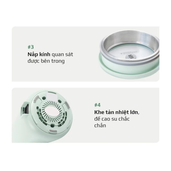 Thiết kế nắp kính kết hợp INOX Duy Nhất Trên Thị Trường giúp bạn quan sát được thành phẩm và quá trình máy nấu.
