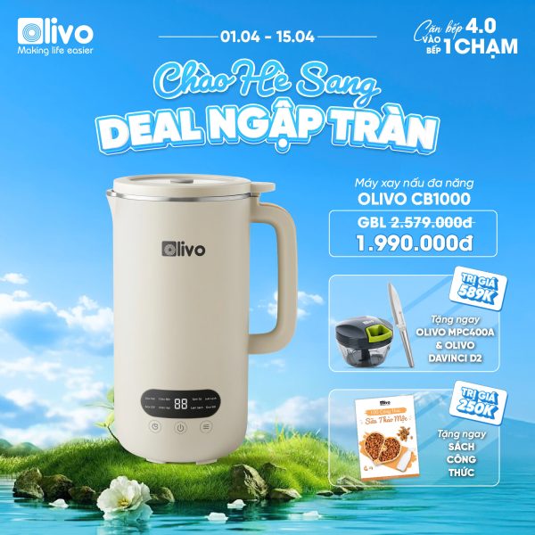Máy xay nấu đa năng OLIVO CB1000 thế hệ mới với dung tích 1000ML không quá lớn, không quá nhỏ, dễ dùng rất thích hợp để sử dụng hàng ngày và tiện lợi khi cần mang theo. Thiết kế hiện đại, màu sắc pastel trendy có thể dùng như một đồ decor trong gian bếp.