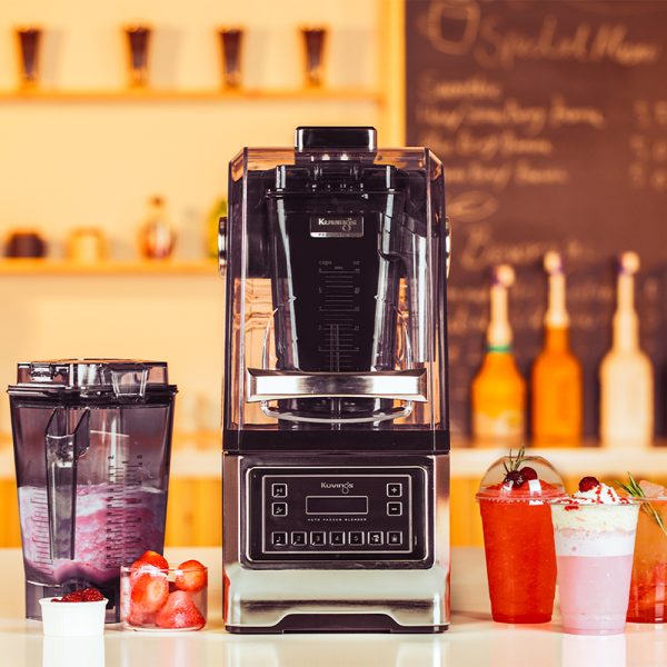 Máy xay sinh tố chân không tự động dành cho kinh doanh hiệu Kuvings CB1000 dung tích 2.0 lít nhập khẩu từ Hàn Quốc có thiết kế nhỏ gọn, sang trọng, hiện đại và an toàn luôn luôn có mặt trong mọi không gian nhà bếp hay nhà hàng, quán bar, quán cafe, khách sạn. Bên cạnh đó, với cấu tạo từ linh kiện cao cấp và nhựa thân thiện môi trường, cứng cáp, bền bỉ và chịu nhiệt tốt giữ máy xay sinh tố chân không lâu phai màu, không mau dơ với độ bền cao theo thời gian sử dụng. Ngoài ra, máy xay sinh tố chân không Kuvings có sách hướng dẫn công thức làm các loại Sinh tố [Smoothie], Nước ép [Juice], Đá xay [Shake and Slush], Sữa hạt và cà phê [Nut milk and coffee], Tráng miệng đông lạnh [Frozen dessert]…., kèm theo sản phẩm cho ra những ly nước ép, sinh tố với mùi vị phong phú hơn, mịn hơn, màu sắc tươi hơn và giữ được toàn bộ dinh dưỡng của trái cây và rau củ quả mà không có bọt.