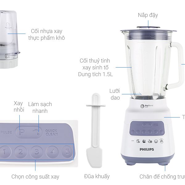 Máy xay sinh tố Philips trang bị 2 cối xay dùng xay sinh tố, xay thịt, xay thực phẩm khô vô cùng tiện lợi