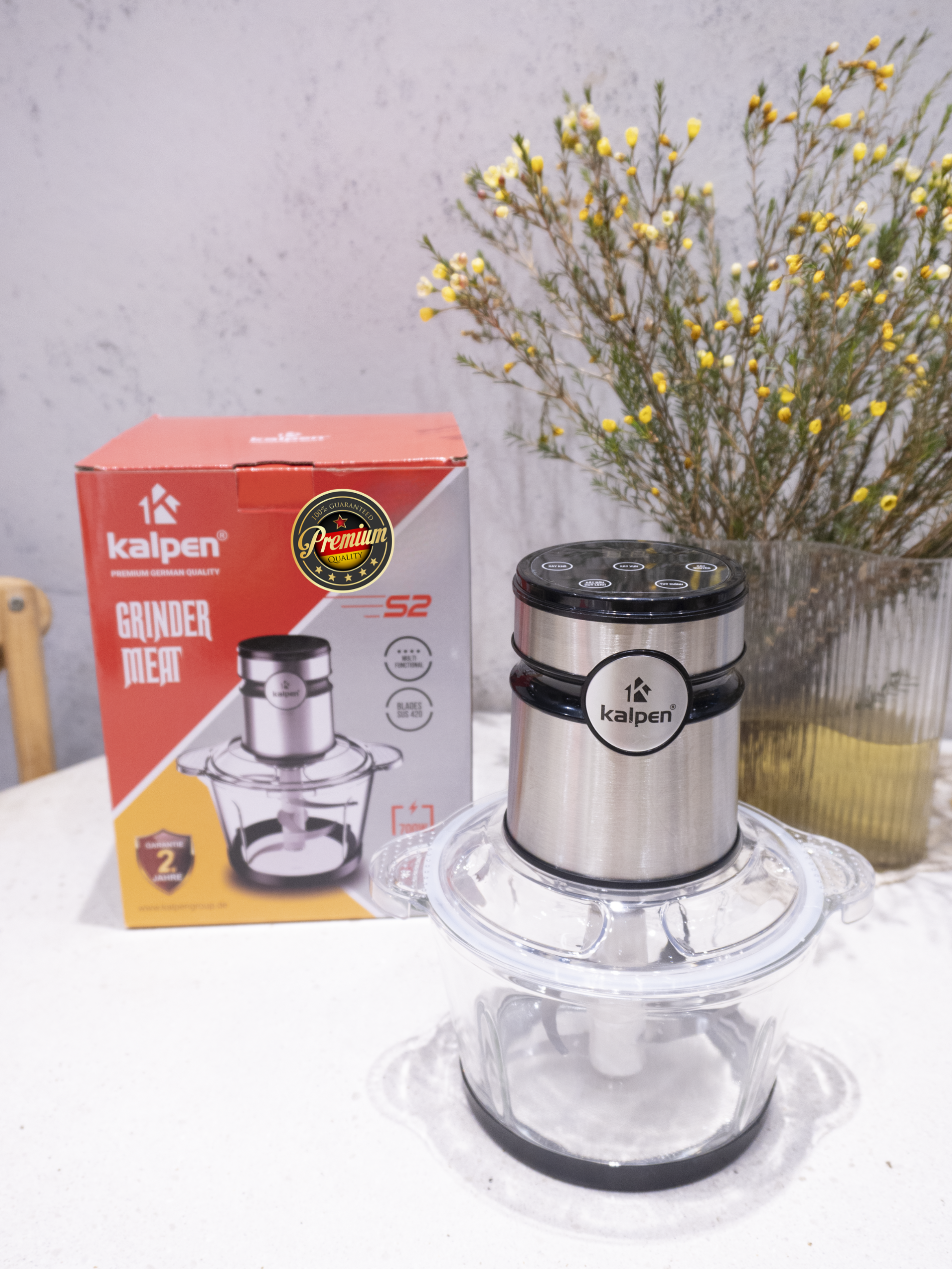 Máy xay thịt đa năng Kalpen S2 có cối xay dung tích 2L được làm bằng thủy tinh Borosilicate. Đây là một loại thủy tinh cao cấp không giải phóng chất độc hại, đảm bảo vẹn nguyên chất lượng của thực phẩm được xay ngay cả khi thực phẩm được để trong cối một khoảng thời gian nhất định hoặc khi xay thực phẩm nóng, lạnh.